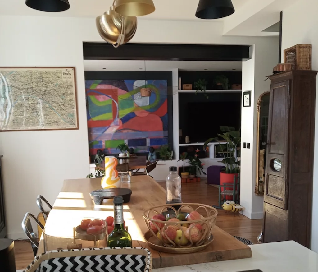 Intérieur d'un appartement avec la vue sur la cuisine dans une ambiance épurée et Feng Shui